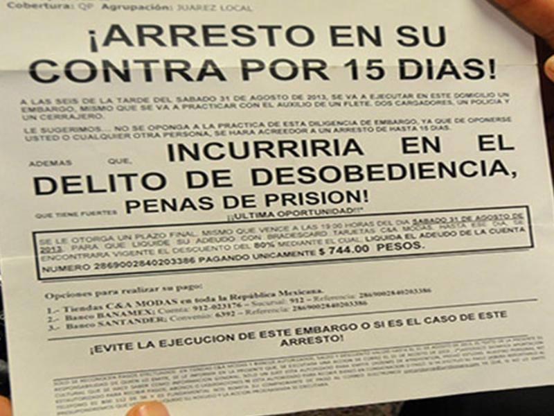 la cobranza extrajudicial fue tipificada como delito penal y federal, con lo que quien lo realice debe pagar multas entre los 50 mil a los 300 mil pesos o recibir una sanción de dos a cuatro años de prisión.