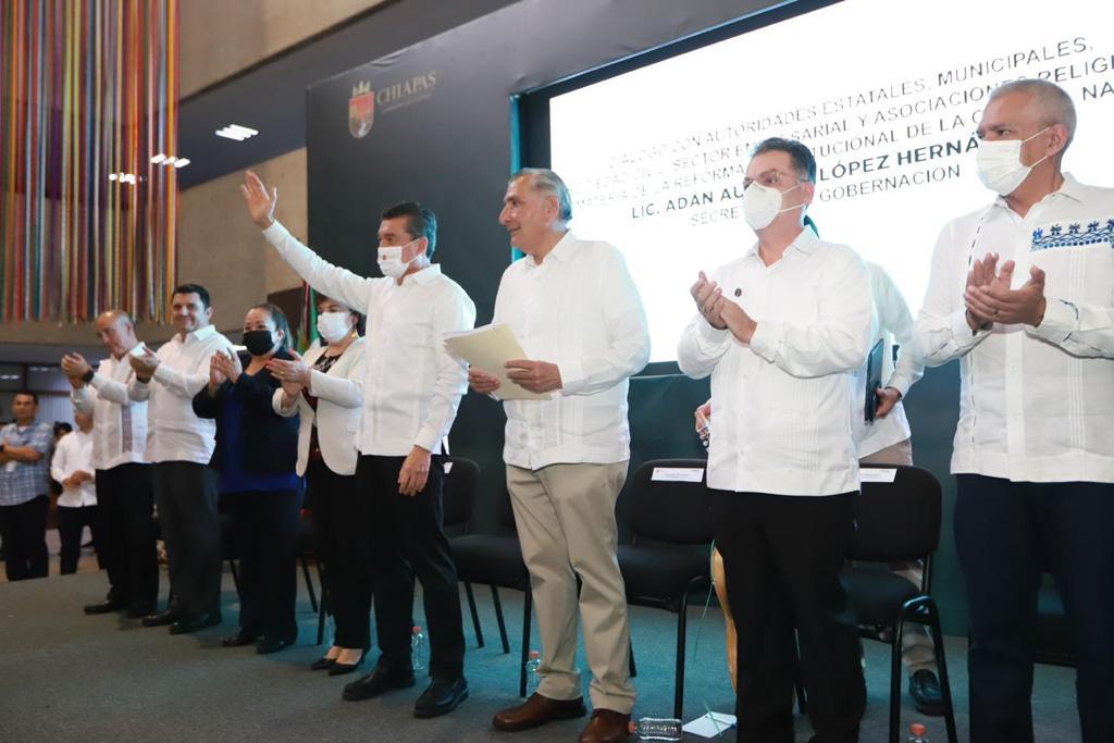Al acompañar al secretario de Gobernación, Adán Augusto López Hernández, al diálogo con autoridades estatales, municipales, sociedad civil y sector empresarial, y asociaciones religiosas, en materia de la Reforma Constitucional de la Guardia Nacional, el gobernador Rutilio Escandón Cadenas resaltó que el dicho de quienes aseguran que el país se está militarizando no tiene razón de ser, pues lo único que se desea es la protección integral del pueblo de Chiapas y de México.